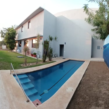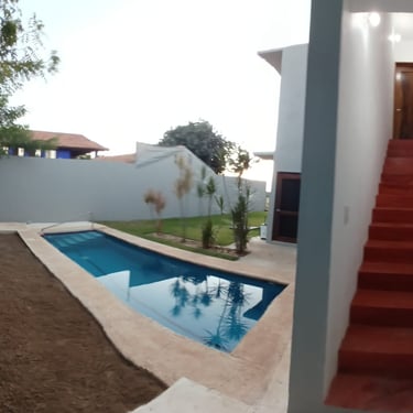 Uno de los principales atractivos de Casa Blanca es su alberca privada, un lugar privilegiado para relajarse y refrescarse bajo el sol. Rodeada de un jardín bien cuidado, la alberca se convierte en el corazón de la propiedad, ideal para reuniones sociales y para disfrutar de momentos de ocio en un entorno tranquilo y natural.